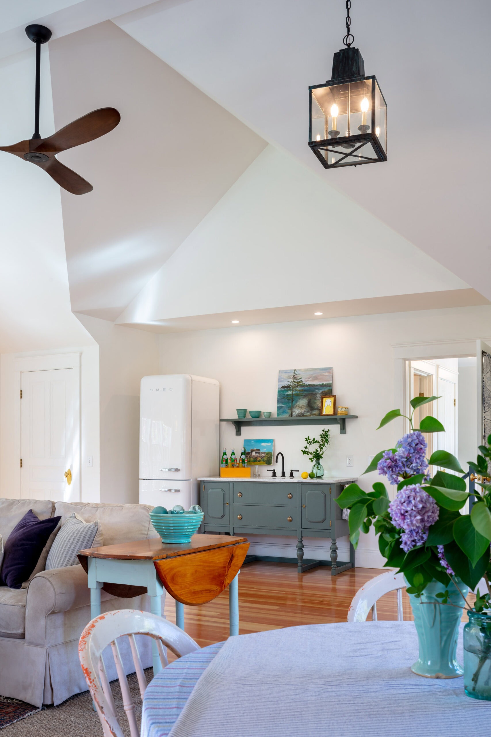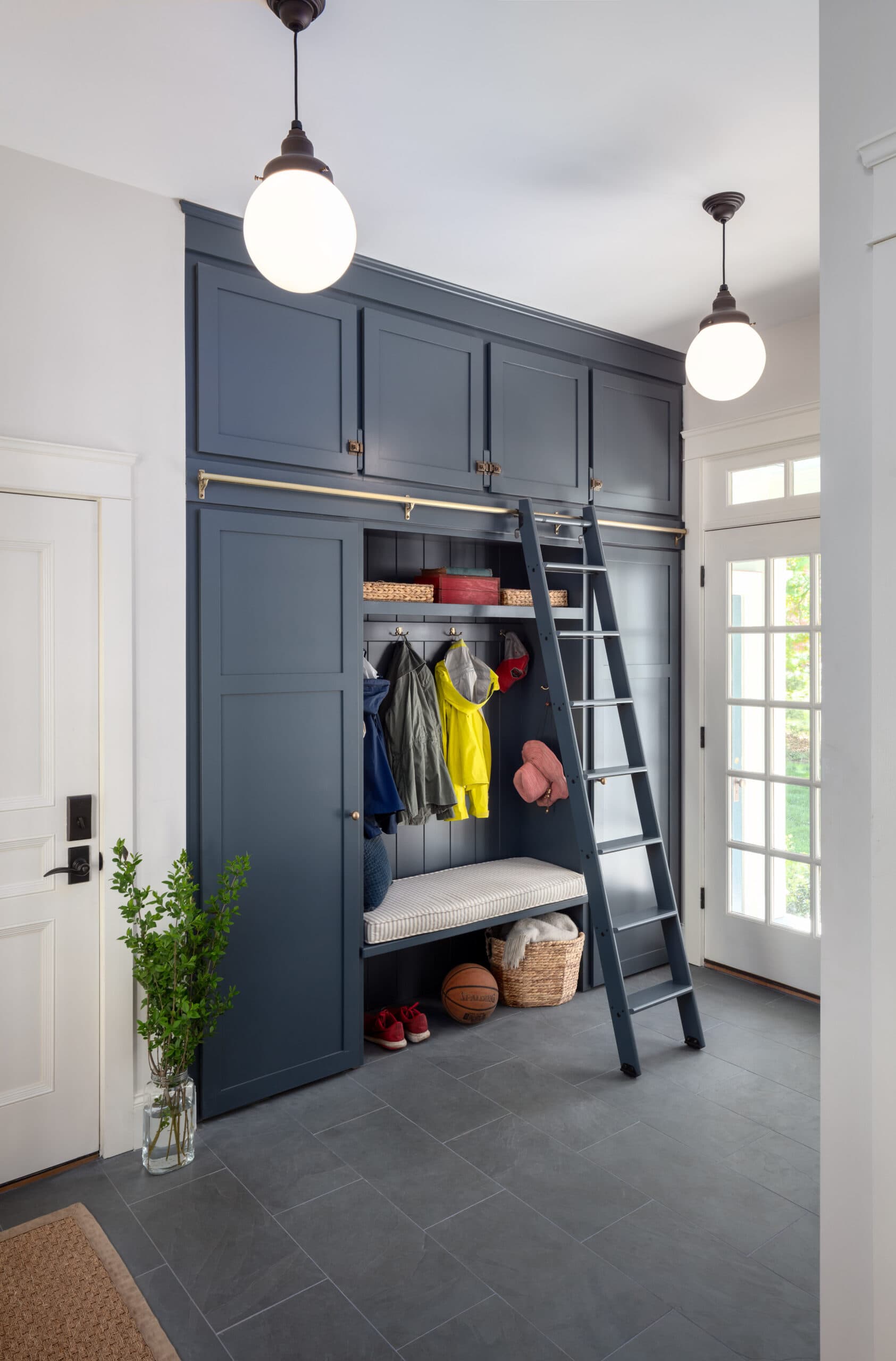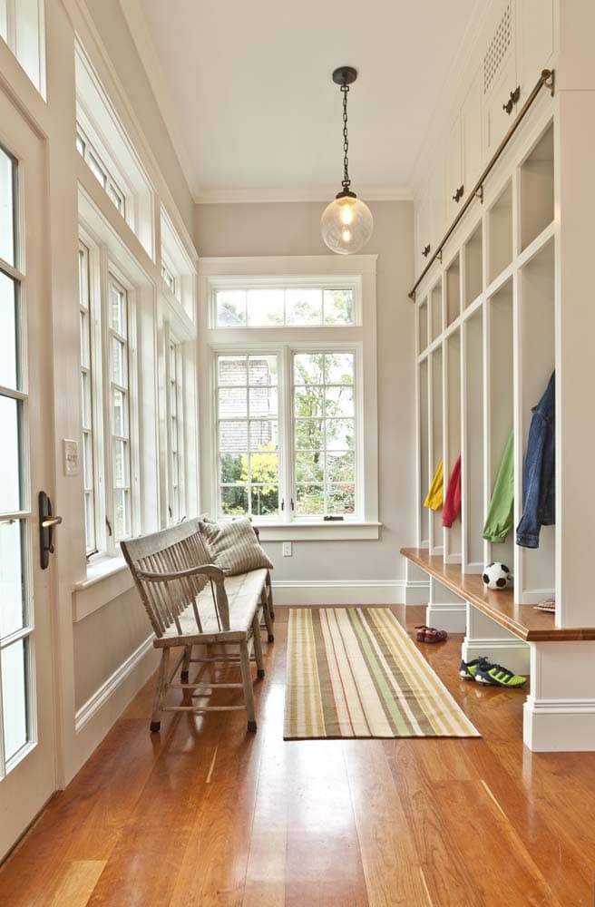 Scope: Renovation designed around historic brick fireplace with pantry, custom cubbies and cabinets, rolling ladder, cherry hardwood floors, and farmers porch