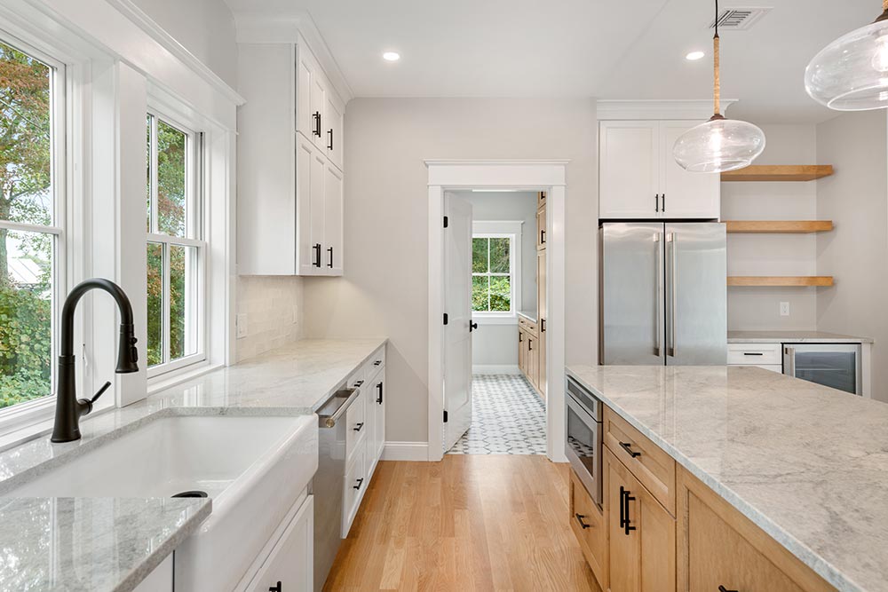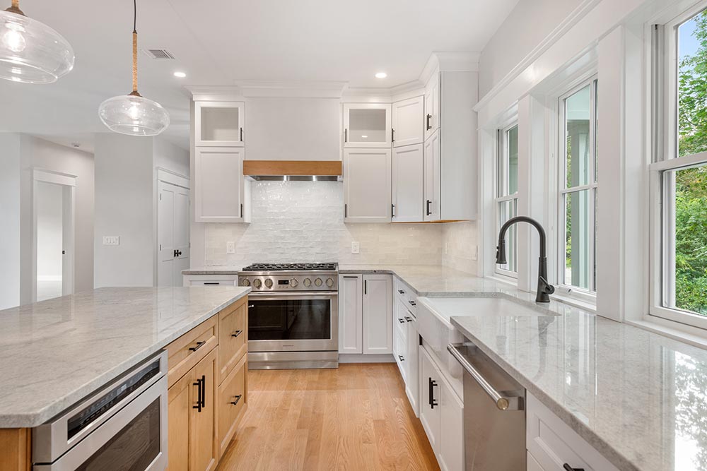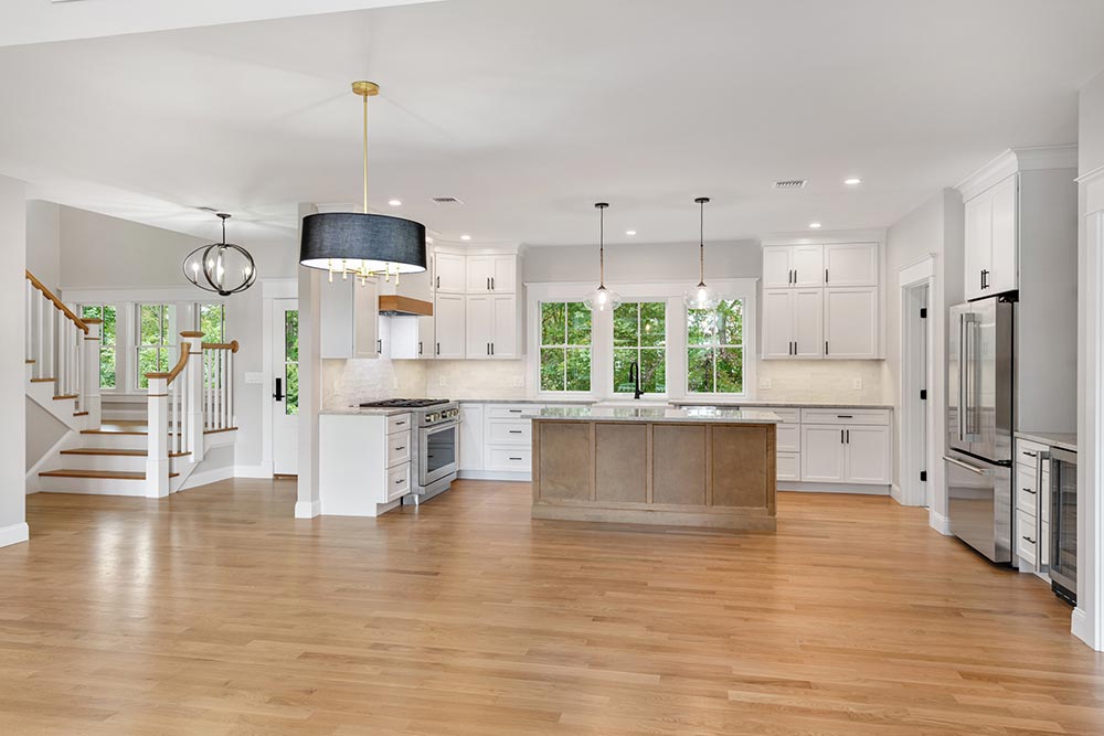 Deslandes Construction acquired a prime parcel of land in Narragansett, RI and developed this thoughtfully designed spec home. Created with coastal living in mind, the layout is ideal for family gatherings after a day at the beach and features a gourmet kitchen with pantry, gas fireplace, private primary suite with soaking tub, home office, and a functional laundry/mudroom. The second floor offers additional bedrooms, a full bath, and flexible play space. An attached garage, classic stone façade, and a spacious deck complete this inviting home.