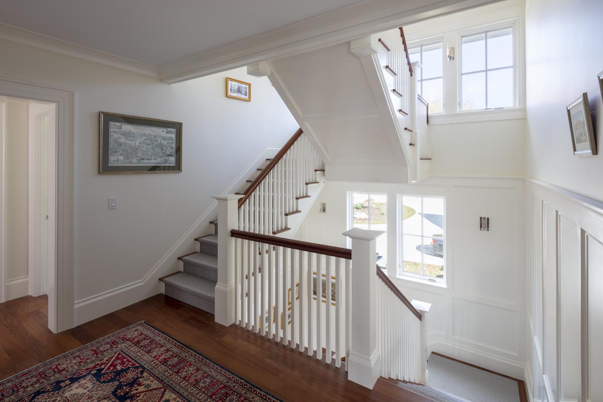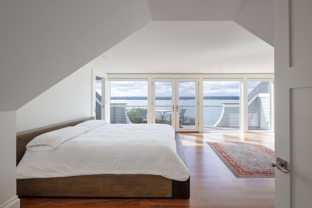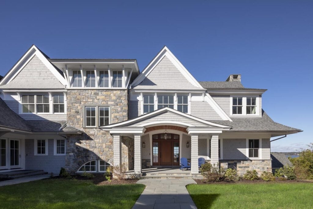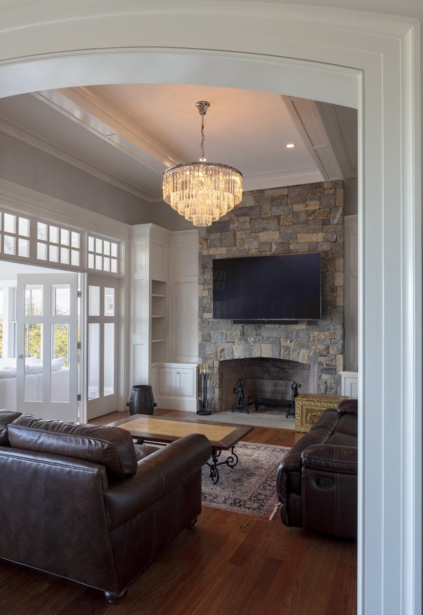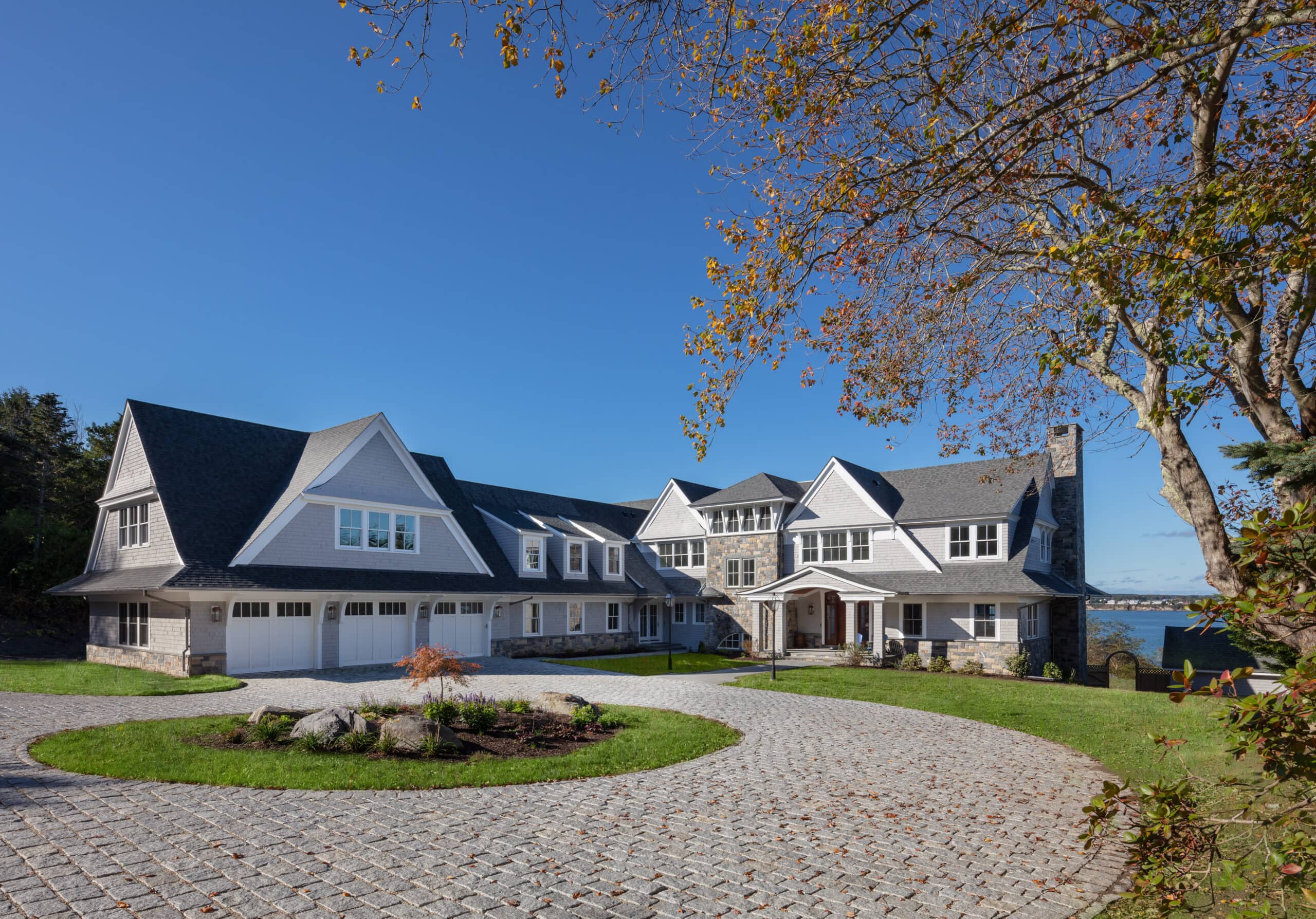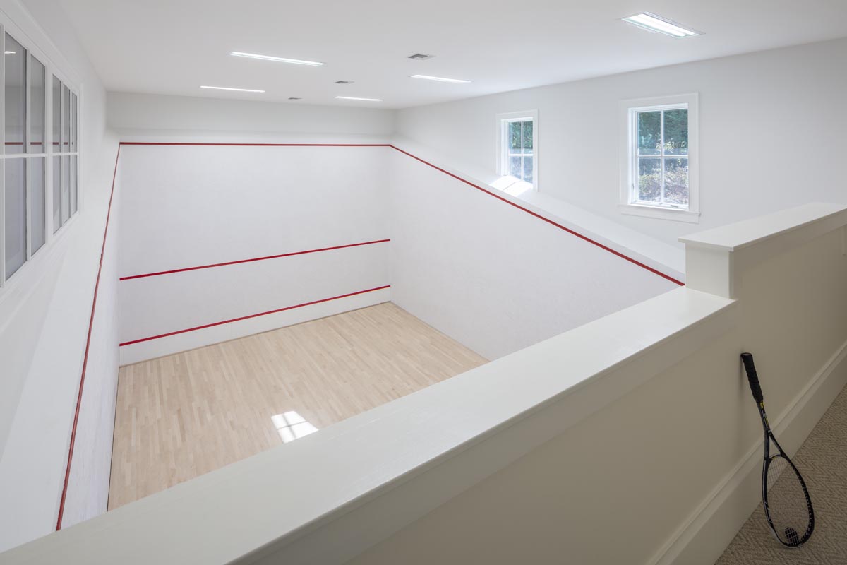 There’s no need to go on vacation if you are fortunate enough to live in this 10,000 square foot home overlooking Narragansett bay. The main floor of living space includes a cherry paneled library, a cozy reading room with a stone fireplace and built-in bookshelves, a sunroom surrounded on three sides with floor to ceiling glass and a gourmet kitchen built in our on-site millwork shop complete with a copper stove hood, LED lit glass cabinets and tile backsplash. Continue down the main hallway to the master suite with custom built his and hers closets, a laundry room, a soaking tub in the master bathroom and glass French doors opening to a private screened porch. The 3rd floor bedroom suite offers its own bathroom and a private balcony which overlooks the bay. The exterior is finished with stone façade, cedar shingles, flaired roof lines and a stainless steel rail system on the back deck. Out talents came into full use when completing the lower level area which includes a full kitchen, tiled sauna, custom made squash court, media room with sloped floor and a workout room