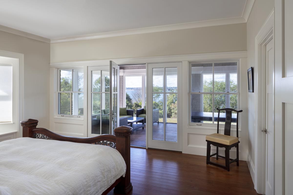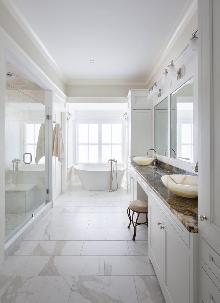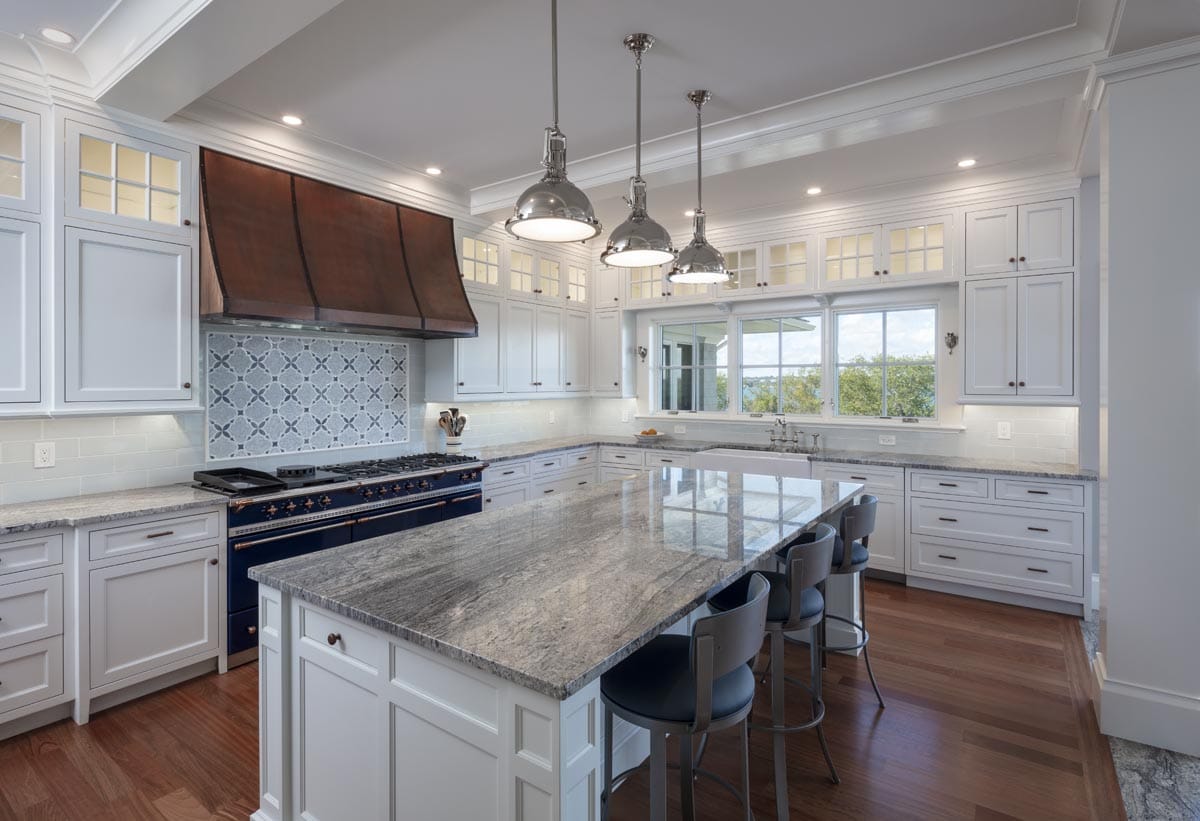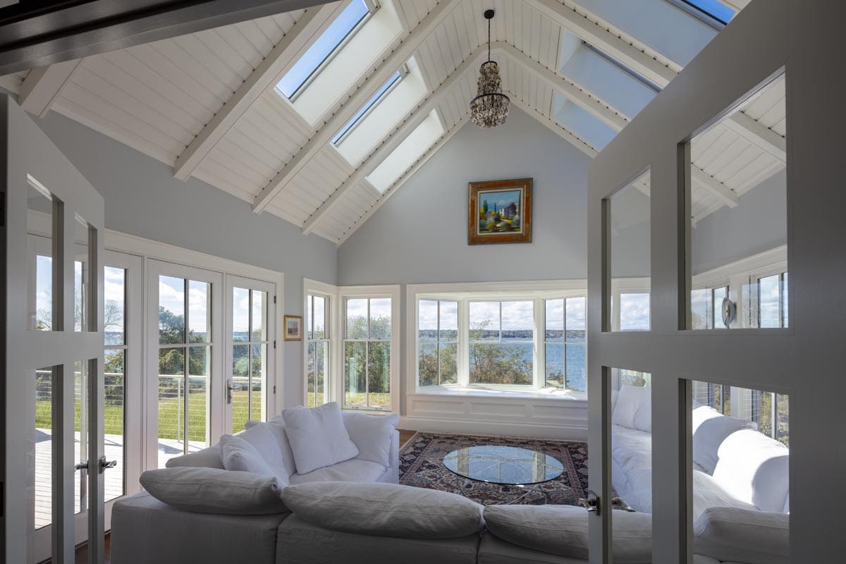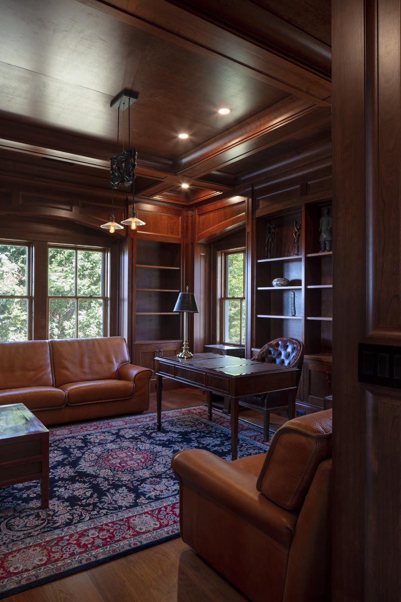 There’s no need to go on vacation if you are fortunate enough to live in this 10,000 square foot home overlooking Narragansett bay. The main floor of living space includes a cherry paneled library, a cozy reading room with a stone fireplace and built-in bookshelves, a sunroom surrounded on three sides with floor to ceiling glass and a gourmet kitchen built in our on-site millwork shop complete with a copper stove hood, LED lit glass cabinets and tile backsplash. Continue down the main hallway to the master suite with custom built his and hers closets, a laundry room, a soaking tub in the master bathroom and glass French doors opening to a private screened porch. The 3rd floor bedroom suite offers its own bathroom and a private balcony which overlooks the bay. The exterior is finished with stone façade, cedar shingles, flaired roof lines and a stainless steel rail system on the back deck. Out talents came into full use when completing the lower level area which includes a full kitchen, tiled sauna, custom made squash court, media room with sloped floor and a workout room